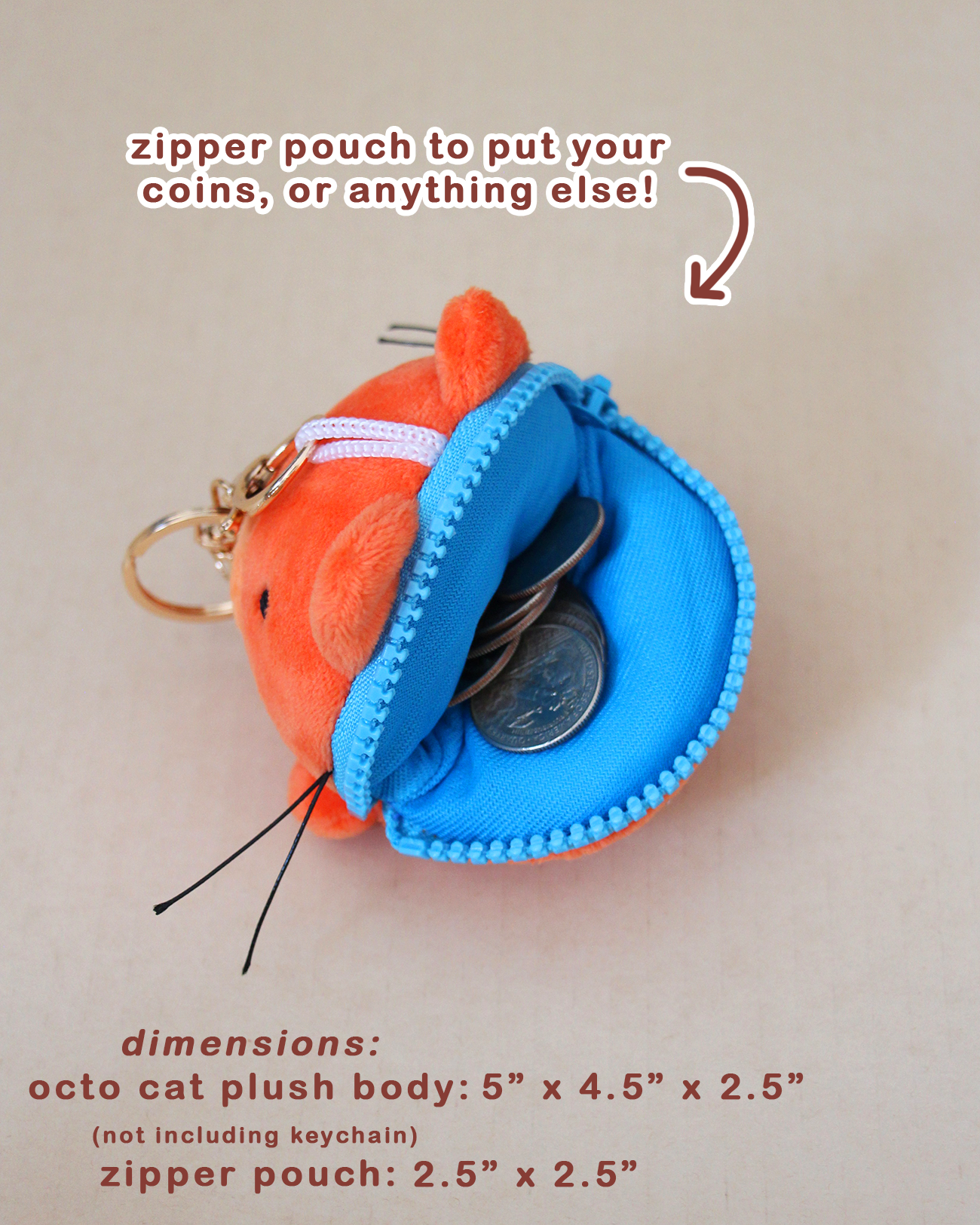 Octo cat plush body (not including keychain): 5" x 4.5" x 2.5"
